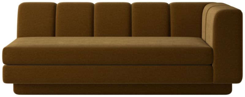 Taking stylistic nods from 1970s Italian design and the designers' own laid-back Southern California aesthetic, right-arm sofa by Lawson-Fenning has generous proportions for gathering and relaxing. A deep seat is complemented by a relaxed back with wide-set channel tufting. Each piece is assembled by hand to ensure a level of quality befitting the design. Coordinates with other pieces from the Yarrow collection to create a sectional sofa. CB2 exclusive.