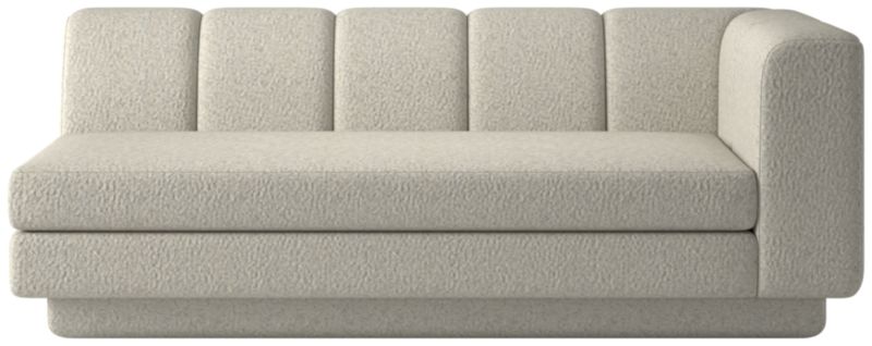 Taking stylistic nods from 1970s Italian design and the designers' own laid-back Southern California aesthetic, right-arm sofa by Lawson-Fenning has generous proportions for gathering and relaxing. A deep seat is complemented by a relaxed back with wide-set channel tufting. Each piece is assembled by hand to ensure a level of quality befitting the design. Coordinates with other pieces from the Yarrow collection to create a sectional sofa. CB2 exclusive.
