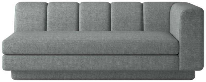 Taking stylistic nods from 1970s Italian design and the designers' own laid-back Southern California aesthetic, right-arm sofa by Lawson-Fenning has generous proportions for gathering and relaxing. A deep seat is complemented by a relaxed back with wide-set channel tufting. Each piece is assembled by hand to ensure a level of quality befitting the design. Coordinates with other pieces from the Yarrow collection to create a sectional sofa. CB2 exclusive.