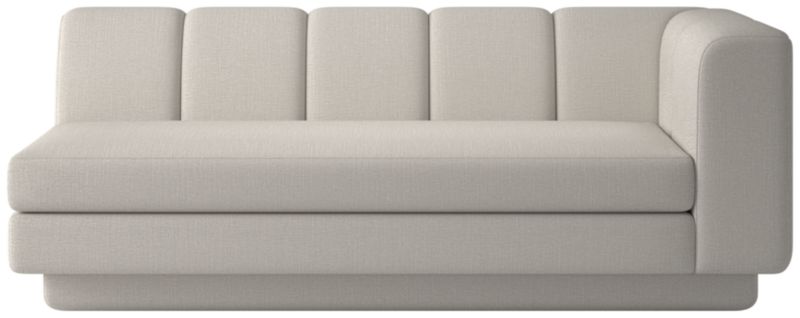 Taking stylistic nods from 1970s Italian design and the designers' own laid-back Southern California aesthetic, right-arm sofa by Lawson-Fenning has generous proportions for gathering and relaxing. A deep seat is complemented by a relaxed back with wide-set channel tufting. Each piece is assembled by hand to ensure a level of quality befitting the design. Coordinates with other pieces from the Yarrow collection to create a sectional sofa. CB2 exclusive.