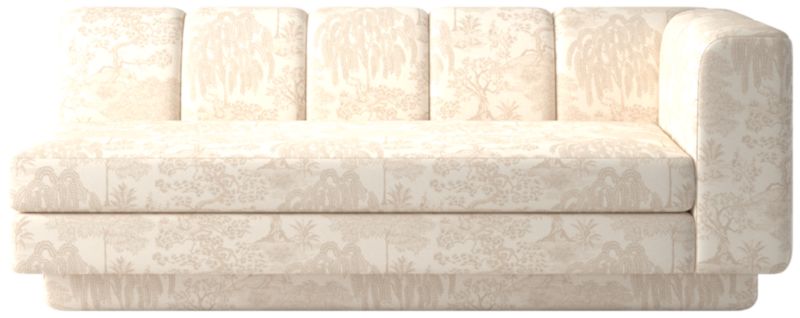 Taking stylistic nods from 1970s Italian design and the designers' own laid-back Southern California aesthetic, right-arm sofa by Lawson-Fenning has generous proportions for gathering and relaxing. A deep seat is complemented by a relaxed back with wide-set channel tufting. Each piece is assembled by hand to ensure a level of quality befitting the design. Coordinates with other pieces from the Yarrow collection to create a sectional sofa. CB2 exclusive.