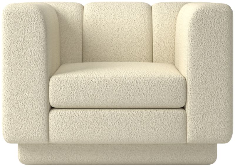 Taking stylistic nods from 1970s Italian design and the designers' own laid-back Southern California aesthetic, square swivel chair by Lawson-Fenning has generous proportions for gathering and relaxing. A deep seat is complemented by a relaxed back with wide-set channel tufting. Each piece is assembled by hand to ensure a level of quality befitting the design. CB2 exclusive.
