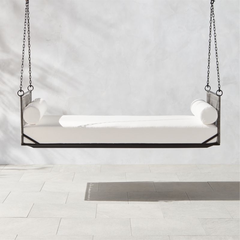 View CartZora Black Rattan Outdoor Hanging Daybed with White Sunbrella® Cushions